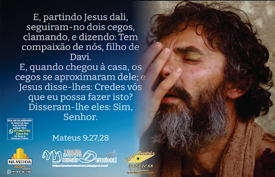 Saindo Jesus dali, dois cegos o seguiram, clamando: 'Filho de Davi, tem misericórdia de nós!' Entrando ele em casa, os cegos se aproximaram, e ele lhes perguntou: 'Vocês creem que eu sou capaz de fazer isso?' Eles responderam: 'Sim, Senhor!'”